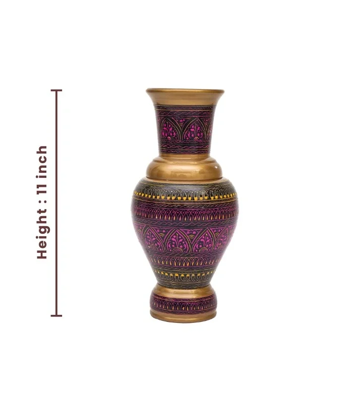 Crafted by expert artisans from Punjab, this wooden vase features delicate hand-painted geometric patterns in classic and elegant purple and golden tones. A masterpiece of traditional craftsmanship, it brings a sophisticated blend of culture and elegance to your home.