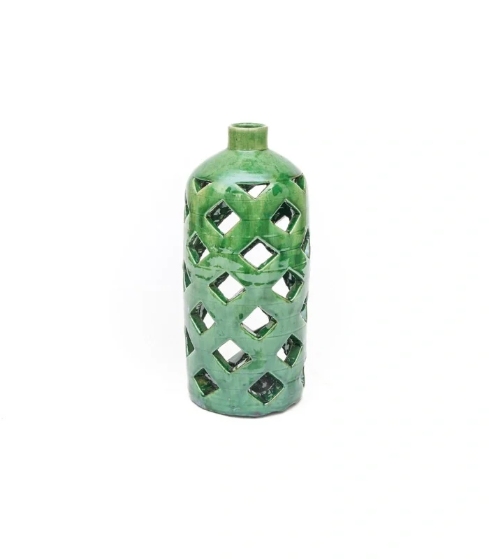 The Ceramic Open Green Weave Vase (Large) is a captivating piece of handcrafted Sindhi pottery, featuring an intricate open-weave design with a vibrant green glaze. Carefully made by artisans in Sindh, Pakistan, it reflects cultural heritage and timeless artistry. Perfect as a decorative floor vase, flower vase, or centerpiece, it brings elegance to living rooms, dining areas, or offices. Each vase is individually handmade, showcasing authentic Pakistani ceramic craftsmanship.