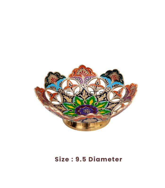 Hand-cast brass bowl featuring intricate Meenakari enamel in the classic Chittai design – a perfect fusion of craftsmanship and elegance