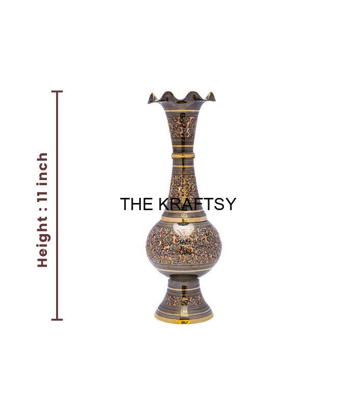Hand-cast & hand-painted brass flower vase with vibrant Qalamkari enamel—experience the beauty of hand-crafted Pakistani brass Vases