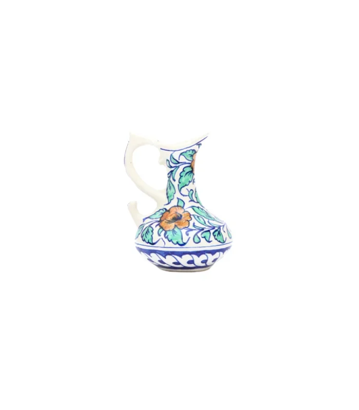 Elevate your space with this exquisite hand-painted ceramic jug from Sindh, Pakistan, featuring delicate floral designs in harmonious blues and peaches. Each piece tells a story of traditional craftsmanship while adding a touch of timeless elegance to any room.