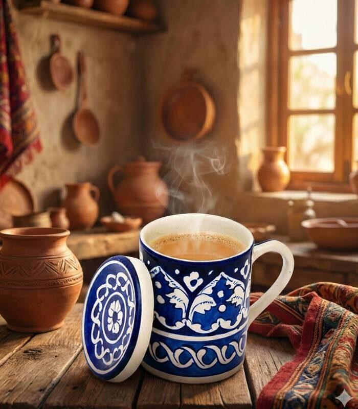 Experience the charm of Pakistani artistry with this hand-painted ceramic mug, showcasing intricate floral motifs in vibrant blue and white. Perfect for daily use or as a stunning decor piece, it combines elegance and functionality in one timeless design.