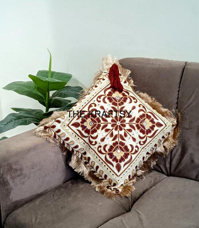 cushion cover is meticulously hand-embroidered, offering one-of-a-kind elegance that reflects the passion of skilled artisans.
