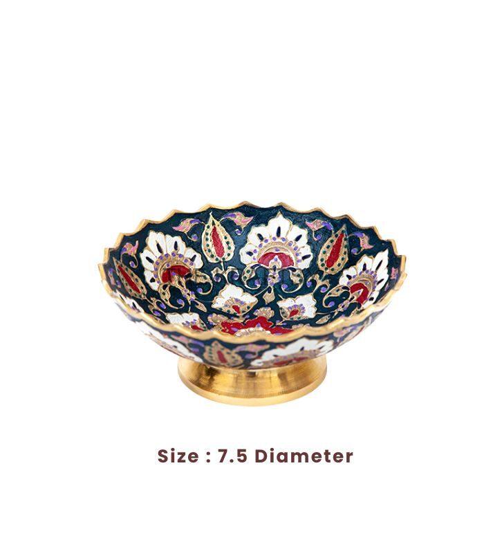 Hand-cast brass bowl adorned with vibrant Meenakari enamel, bringing the lively spirit of Pakistan into your space with bold elegance.
