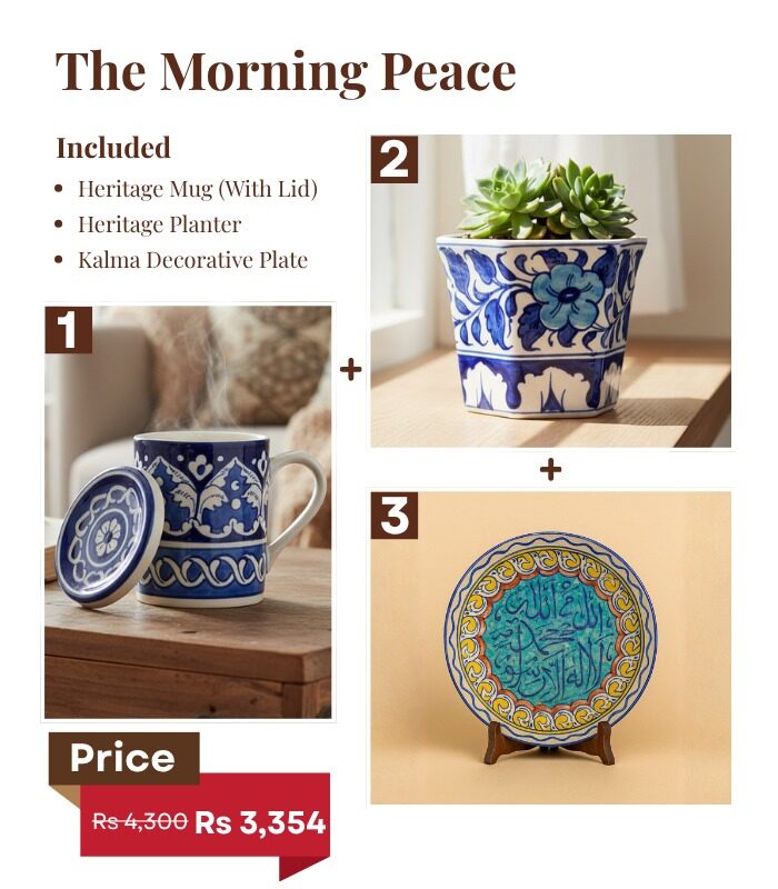 Start your day surrounded by calm and creativity with the Kraftsy Morning Peace Set, a limited edition 11.11 drop. This beautiful trio includes a heritage mug with lid, a handcrafted heritage planter, and a pottery Kalma decorative plate, creating the perfect blend of serenity and style. Ideal for morning rituals, thoughtful gifting, or mindful décor, this set celebrates heritage craftsmanship and peaceful living.